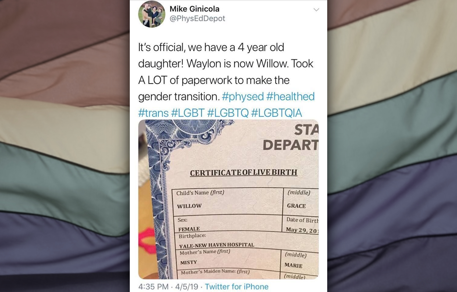 A left-wing Democrat and LGBT activist, Mike Ginicola is celebrating the artificial transition of his son into a girl.