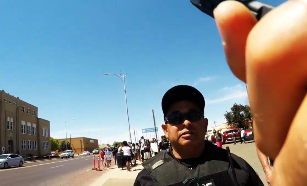 During a Black Lives Matter anti-police protest in Clovis, NM, cops threaten to arrest open-air preachers for preaching during the protest and ask them to “leave the property” for “inciting a riot.”