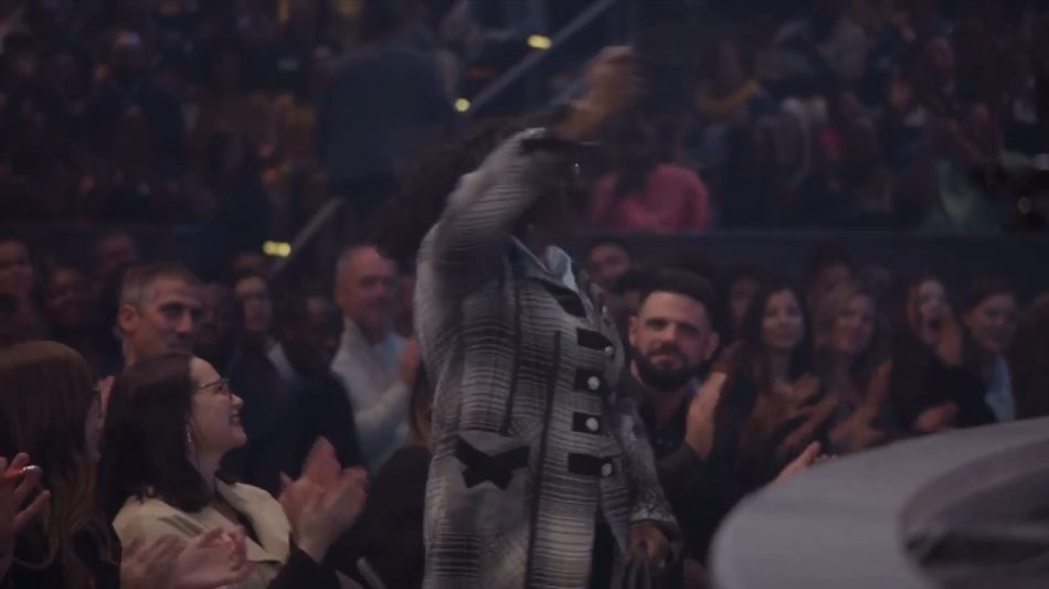 As she stands up to receive the awkward praise of thousands of lost souls, you can see to her left that Steven Furtick is sitting close to her clapping and cheering along with the rest of the audience.