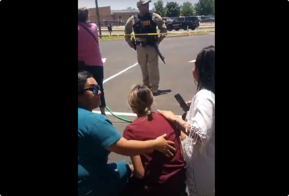 Video has now surfaced showing that when cops arrived at the school in Uvalde, TX, the shooting continued for several minutes while the cops stood outside and did nothing and, in fact, even prevented parents with force from helping their children.