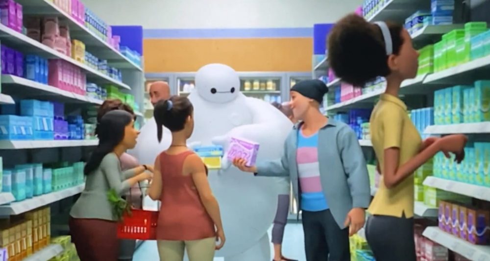 In a leaked video of Disney’s upcoming children’s show, Baymax, a character with a male voice is in a store who asked another shopper which tampons she recommends. This then led to several other shoppers coming up to the character and giving him their opinion on which tampons they thought were best.