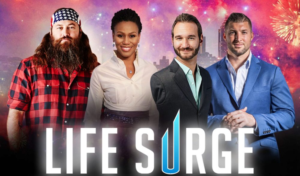These are some of the headlines of an upcoming multi-city conferencing tour called Life Surge being put on by Tim Tebow, Priscilla Shirer, Willie Robertson, the Duck Dynasty guy, and some other guy named Nick Vujicic. This event claims that it will be an event teaching Christians how to turn their faith into cold, hard cash. In reality, it’s nothing more than the prosperity gospel wrapped up in high-quality production and devoid of the gospel. Watch: