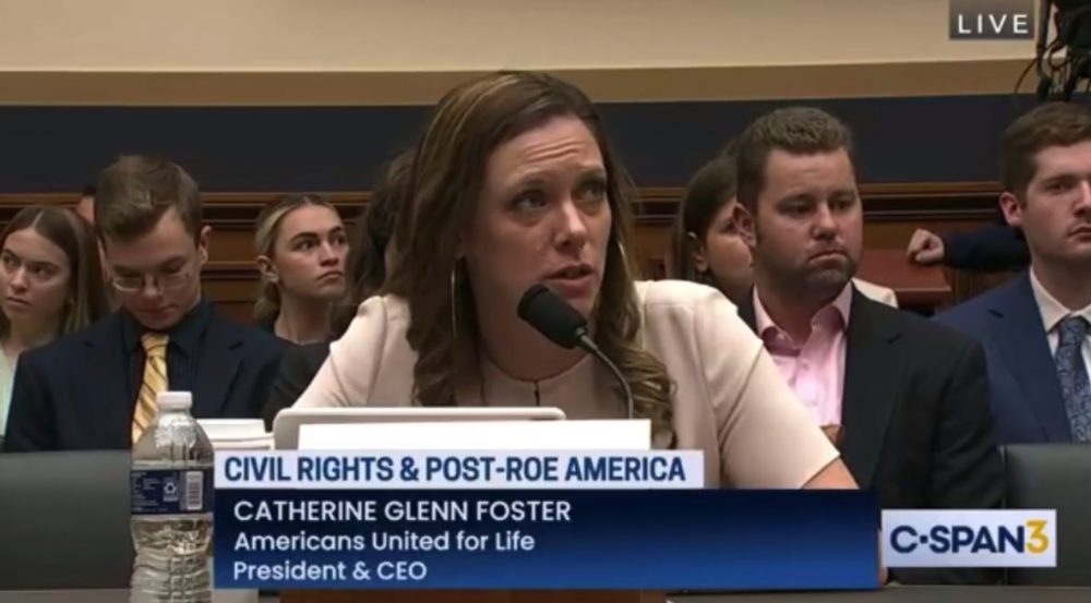 Pro-life leader, Catherine Glenn Foster, an attorney and President & CEO of Americans United for Life, was recently grilled by leftists during a House judiciary committee hearing and demonstrated, inadvertently, exactly why the pro-life movement, led by people like her, is a farce.