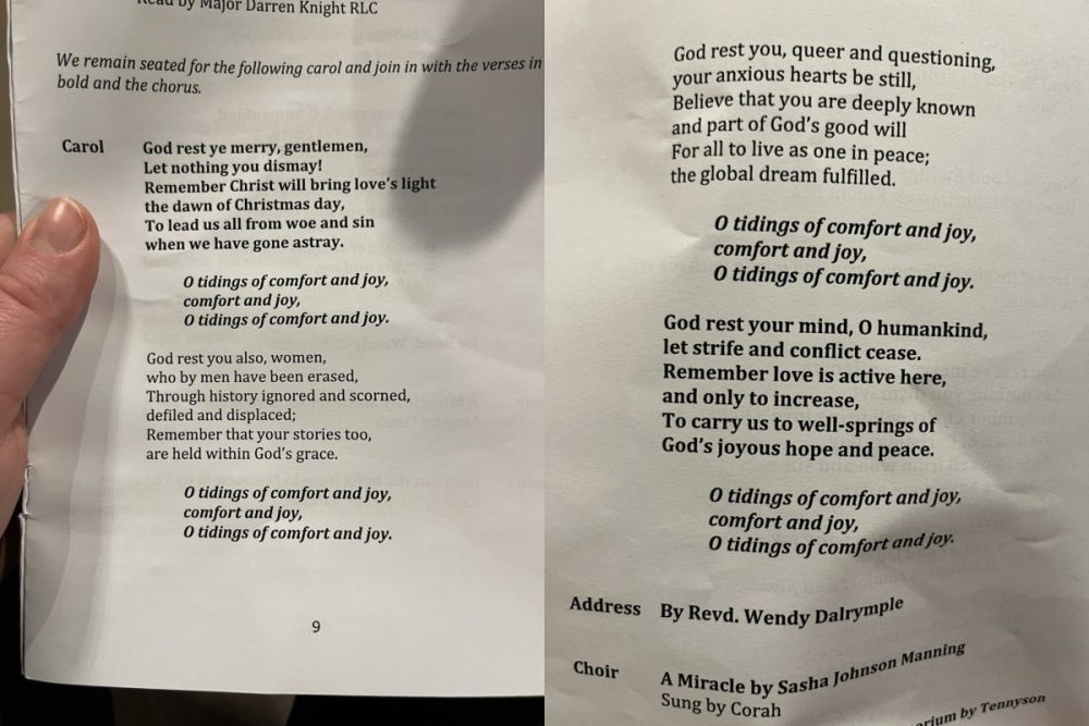 All Saints with Holy Trinity in Loughborough really pulled out all the stops this year with their inclusive and oh-so-woke revision of the classic Christmas carol “God Rest Ye Merry, Gentlemen”. Instead of mentioning Jesus as the savior of sinners, the updated lyrics now reference “queer and questioning” individuals and “women, who by men have been erasing”.