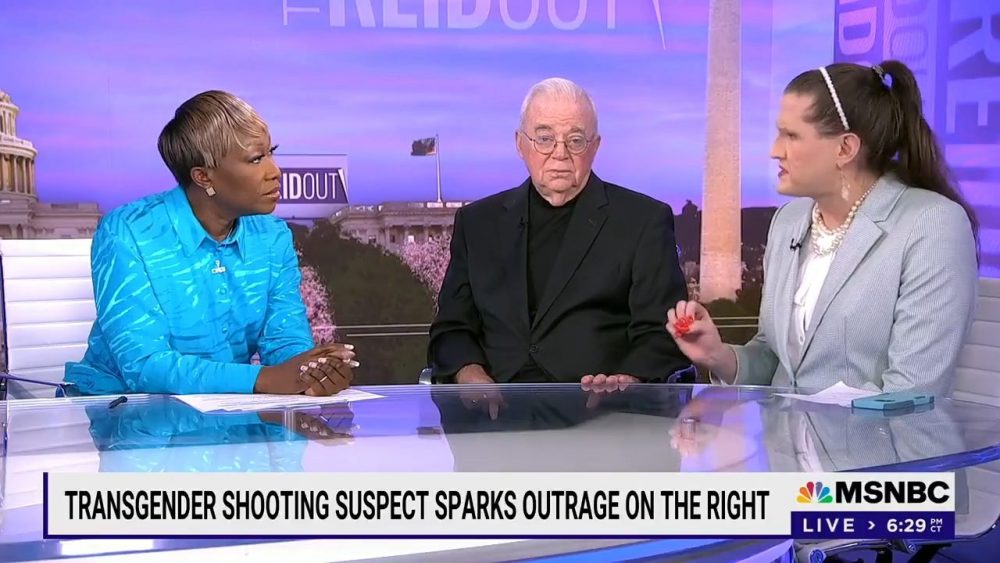 When asked by the MSNBC host, the silly weak woman, Joy Reid, what he feels when people like Michael Knowles or Tucker Carlson point out the dangers behind the militant transgender movement, the trans-clown answers: